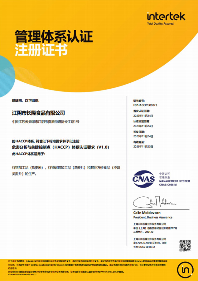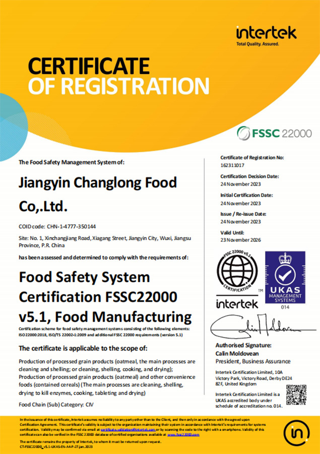 江陰市長隆食品有限公司 江陰市長隆食品有限公司坐落于長江之畔,隸屬于"中國企業(yè)500強(qiáng)"--江蘇新長江實(shí)業(yè)集團(tuán)有限公司,廠區(qū)面積70000平方米,主要生產(chǎn)燕麥及其